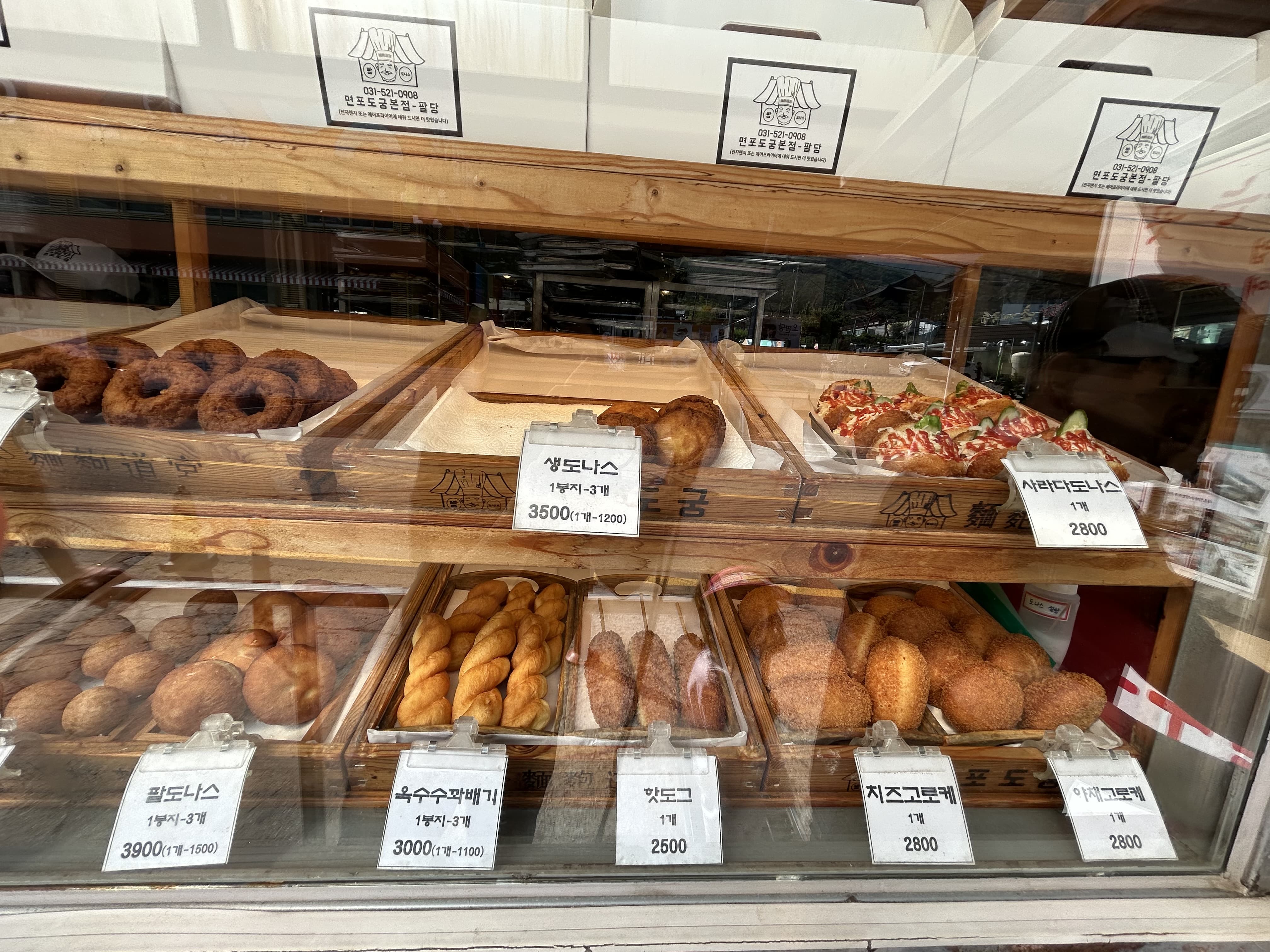 빵을 튀기는 모습도 직접 볼 수 있고, 다양한 종류의 빵이 유리창 안으로 보여서 보는 재미와 여러가지 빵을 골라먹는 재미도 쏠쏠하답니다.