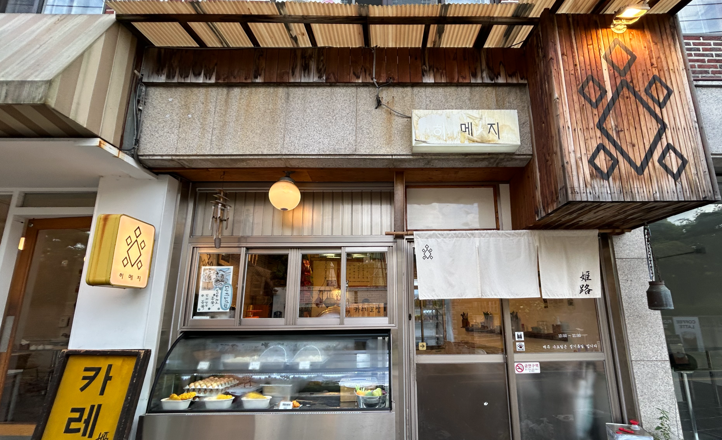 히메지는 눈에 잘 띄지 않는 간판과 소박한 외관 덕분에 그동안 여러 번 지나쳤던 가게였습니다.